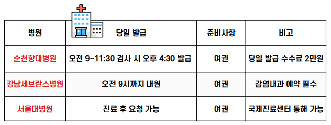 - ⏰ 오전 일찍 병원 방문해야 당일 발급 가능